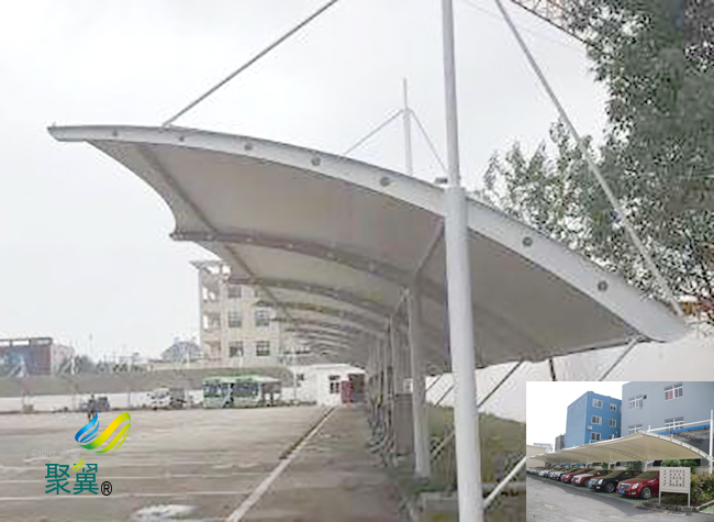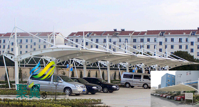 膜結(jié)構(gòu)車棚PVC材料的主要特點(diǎn)是強(qiáng)度低、彈性大、易老化、徐變大、自潔性差,但價(jià)格便宜,膜結(jié)構(gòu)車棚容易加工制作,色彩豐富,抗折疊性能好。為改善其性能,可在膜結(jié)構(gòu)車棚表面涂一層聚四氟乙烯涂層,提高其抗老化和自潔能力,膜結(jié)構(gòu)車棚壽命可達(dá)到15年左右。