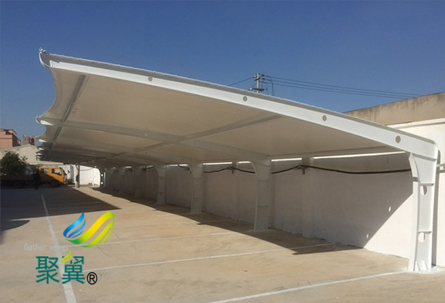 膜結構車棚的重要材料是膜材料,最重要的是發力。它相對較高,膜結構車棚具有良好的耐久性,相對阻燃,并具有良好的自潔性能。