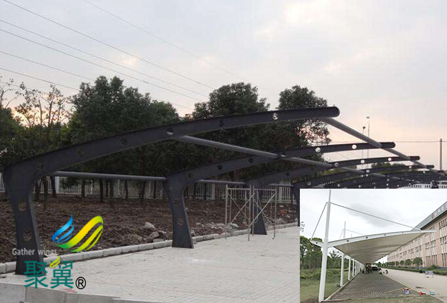 膜結(jié)構(gòu)車棚跨度空間大指出其因?yàn)樽灾剌p,膜結(jié)構(gòu)車棚修建能夠不需要內(nèi)部支撐面大跨度掩蓋空間,這使大家能夠列靈活計和運(yùn)用修建空間,描繪出愈加有構(gòu)思的修建,上海聚翼遮陽設(shè)備有限公司。