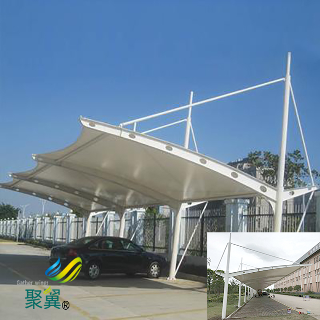 膜結構車棚的透明度很好。白天,陽光可以透過薄膜材料擴散,使室內外照明效果幾乎相同。膜結構車棚充分利用自然采光,節約照明能源。夜晚,膜結構車棚內部的光線通過膜體照亮夜空,充滿夢幻般的視覺效果,給人耳目一新的感覺,膜結構車棚具有良好的宣傳效果。功能與藝術的充分結合,使得膜結構車棚的透明性**適合體育場館、商業空間和公共廣場小品的塑造。