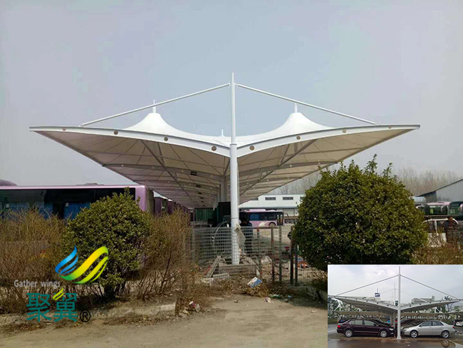 膜結構車棚來和這些金屬車棚做一下對比,來說一下浙江省紹興市新昌縣膜結構車棚受歡迎的理由是什么?首先,浙江省紹興市新昌縣膜結構車棚是一種公用建筑物,是由建設單位出資進行修建,所以這種產品的首要要求就是耐用穩固,金屬車棚都是金屬支撐柱,然后其上進行焊接等工藝加裝頂棚。如果是采用的聚碳酸酯材料作為頂棚的話,采用螺栓固定。相對于膜結構來說,整體能承受的載荷會小很多,遇到劇烈的暴風雨天氣,頂棚會和支撐件分離。而膜結構受力點小,單位尺寸上能承受的壓強高,因此在多次的實踐中,浙江省紹興市新昌縣膜結構車棚都穩固如山。