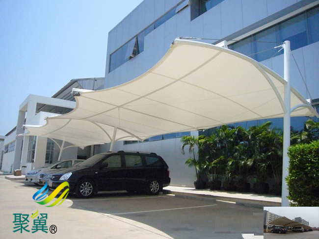 膜結(jié)構(gòu)車棚都穩(wěn)固如山。 車棚的透光性:金屬車棚的頂棚一般都是采用聚碳酸酯材料或者是彩鋼板,二者的透光性和膜結(jié)構(gòu)相比,膜結(jié)構(gòu)材料的透光性更好,而且膜結(jié)構(gòu)作為一種高分子布的話,不會因?yàn)殚L時(shí)間的直曬變黃,也不會物理特性發(fā)生變化,比如變脆,軟化等現(xiàn)象。湖南省衡陽市常寧市膜結(jié)構(gòu)車棚的重量輕,湖南省衡陽市常寧市膜結(jié)構(gòu)車棚布是一種建筑織物,能承受高強(qiáng)度的沖擊和拉伸,而且可以任意變形。因此膜結(jié)構(gòu)在行業(yè)內(nèi)有“不破玻璃”的稱號。同時(shí)成本只有其它結(jié)構(gòu)車棚的一半或者更少。藝術(shù)性:湖南省衡陽市常寧市膜結(jié)構(gòu)車棚最值得一提的是它可以根據(jù)支撐構(gòu)件的位置和高低排列組成不同的形狀,這在金屬車棚上是無法想象的。如在車棚頂部通過拉伸索,使膜結(jié)構(gòu)布邊沿向上翻起。這要是在彩鋼上只能通過對彩鋼板進(jìn)行預(yù)熱加工才行,需要耗費(fèi)極大的代價(jià)。而在膜結(jié)構(gòu)材料上,通過支撐和張拉索就能構(gòu)成。所以湖南省衡陽市常寧市膜結(jié)構(gòu)車棚可以通過自身柔美的曲線和周圍的藝術(shù)景觀結(jié)合起來,給人以美的享受