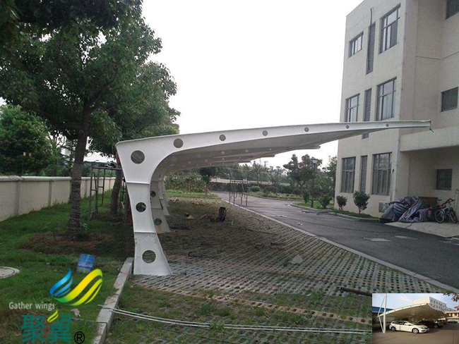 膜結構車棚是近年來在國內開始流行的一種新式的車棚結構。它與以往的舊式車棚相比,結構更加輕盈,而且在使用中比較穩(wěn)固。它的材料使用了高分子膜結構材料和支撐構件共同組成,并且能根據(jù)支撐構件的高低位置不同而呈現(xiàn)不同的形狀。因此在教育,商業(yè),體育館等公共場所都有很廣泛的應用 云南省曲靖市馬龍縣膜結構車棚在最初是作為一種能提供給車輛停泊的地方,使車輛避免了直接面對風吹雨打。用來保證自行車,汽車等在車棚下不受損傷。在云南省曲靖市馬龍縣膜結構車棚未出現(xiàn)之前,市場主要的是鐵制車棚,鋁合金車棚,彩鋼車棚等。這些云南省曲靖市馬龍縣膜結構車棚都是采用金屬構件來制作,因此具有笨重,形式單調的缺點。下面我們結合膜結構車棚來和這些金屬車棚做一下對比,來說一下云南省曲靖市馬龍縣膜結構車棚受歡迎的理由是什么?