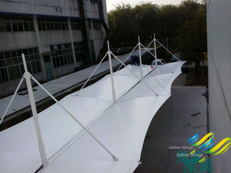 項目類型:自行車停車棚 項目材料:PVDF專業自行車棚遮陽面料 產品系列:大氣上檔次 工程地點:杭州市余杭區 項目預算:大氣上檔次 杭州市余杭區星橋街道自行車雨棚采用PVDF專業自行車棚遮陽面料,經久耐用,美觀大方,下圖為我司工作人員安裝現場:自行車棚的遮陽可采用PVDF、PVC等的面料來安裝,其使用優勢見以下詳解:膜布面料獨特在:(有自潔功能)易清洗、讓面料持久如新、抗老化,防凍,防雨,耐高溫,抗壓等。