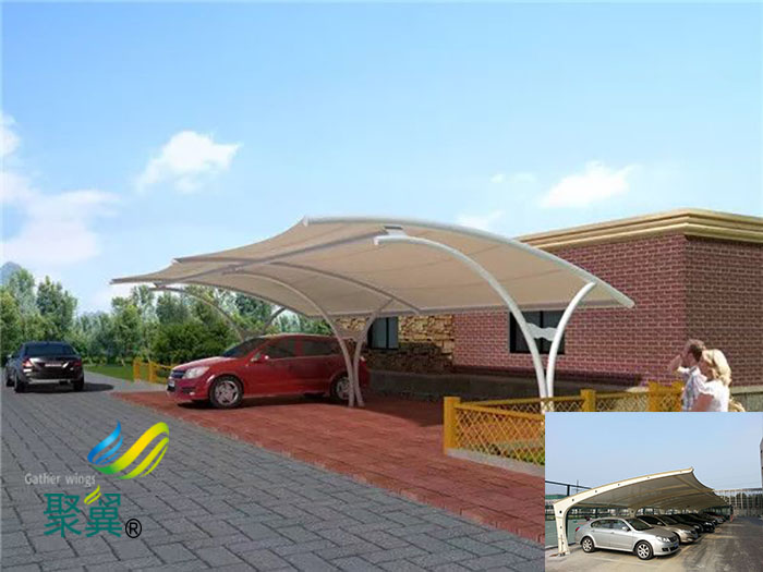 膜結構停車棚,自重輕,具有良好的受力特點--成為大跨度空間結構的主要形式之一。停車場的規劃和建設成為現代城市規劃的重要組成部分,在以后的建設里會變得越來越重要。膜結構輕巧、別致的造型在停車場及候車廳的建設中擔當了重要角色,除了滿足防風雨、防日曬等基本功能外,并有較好的標識招攬效果,展現了人們個性化的一面。