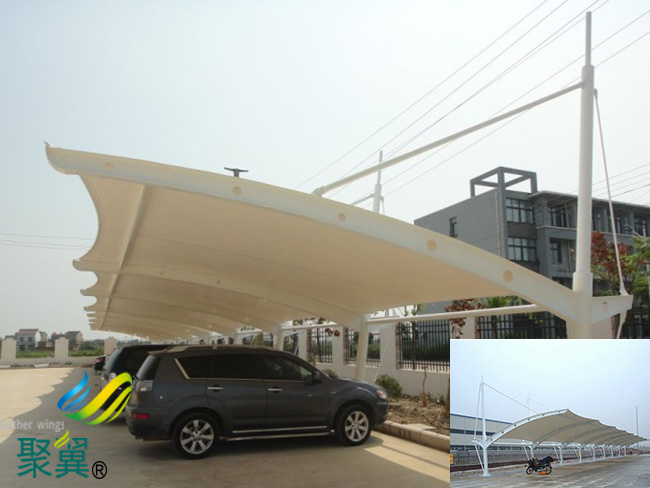 自行車棚屬于室外基礎建設,風水雨打是避免不了的。而膜材料具有高強度的特點,再加上張拉技術的應用,根據力學原因構造圍城,使得膜結構自行車車棚的支撐和強度遠遠高于其他材料。有的車棚采用永久性膜材,可使用三、四十年,做到了真正的經久耐用。