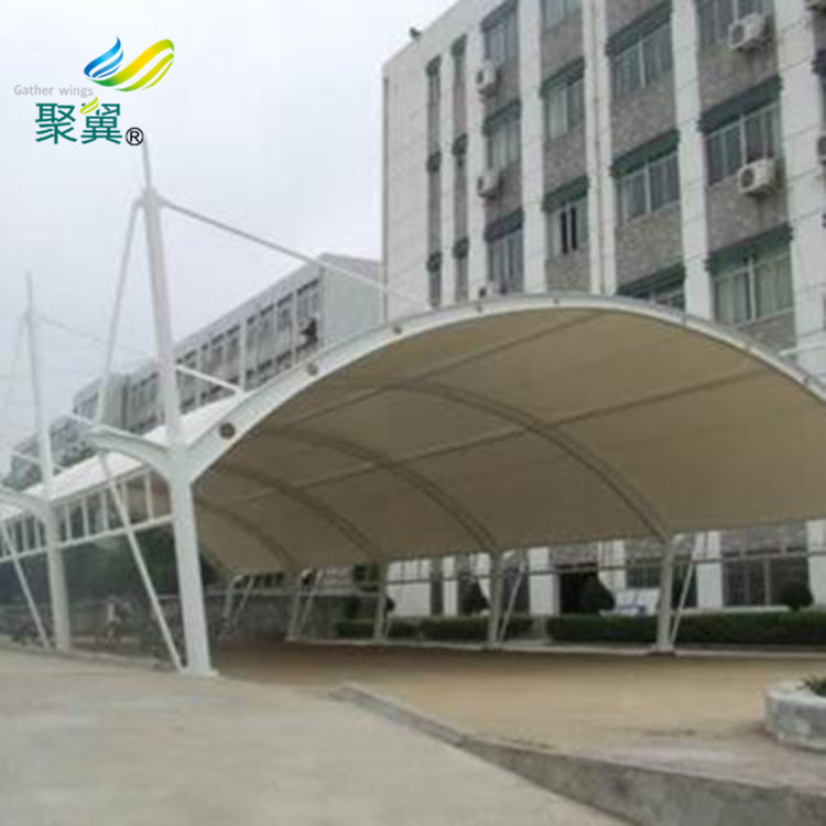 有的車棚采用永久性膜材,可使用四十年。特別是遇到劇烈的暴風雨天氣,膜結構建筑巍然不動,毫發不損。藝術性:除了一般雨蓬不可比擬的實用、耐用、遮風擋雨的功能外。