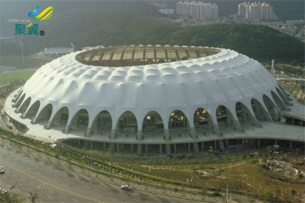 膜結構建筑具有防噪功能很有需要,在一些運動場膜結構,體育場膜結構,球場膜結構,廣場膜結構,舞臺膜結構等。膜結構建筑防噪功能的實現是通過膜結構聲學設計集中圍繞兩方面的聲學品質進行。1,如何屏蔽外部噪聲對建筑的影響;2,建筑輪廓對回聲作用與混響時間影響。噪聲與回聲需要考慮的因素截然不同,但兩者須同時考慮,井評價建筑聲環境綜合品質。
