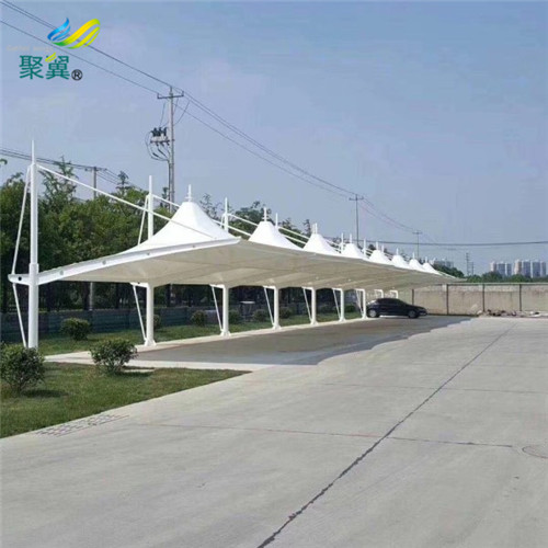 膜結構停車棚內部采用38鍍鋅圓管與車棚框架焊接,加強棚頂部強度,可讓棚內感覺寬敞明亮,停靠車輛輕松方便,完全符合停車棚制作要求規范。
