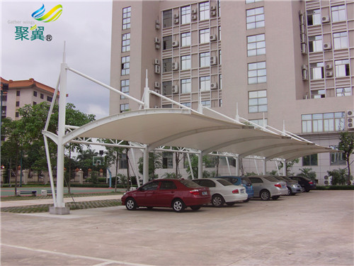 膜結構車棚遮陽棚主要用于汽車、單車或電瓶車、公共汽車停車場等,樣式新穎,造型設計美觀,經濟適用。膜結構車棚的設計技術變得越來越先進,膜結構材料具有聯接可靠、施工便捷等特征,最關鍵的是膜材具有充足的強度和優異的力學性能以及抗老化、耐高溫、抗腐蝕等特性,確保車輛在炎熱的夏天不會遭受烈日侵襲。