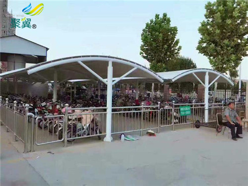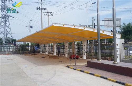 膜結構停車棚,自重輕,具有良好的受力特點——成為大跨度空間結構的主要形式之一。停車場的規(guī)劃和建設成為現(xiàn)代城市規(guī)劃的重要組成部分,在以后的建設里會變得越來越重要。膜結構輕巧、別致的造型在停車場及候車廳的建設中擔當了重要角色,除了滿足防風雨、防日曬等基本功能外,并有較好的標識招攬效果,展現(xiàn)了人們個性化的一面。