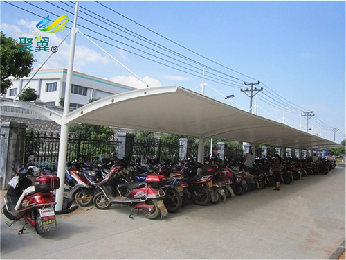 膜結(jié)構(gòu)車(chē)棚是近年來(lái)在國(guó)內(nèi)開(kāi)端盛行的一種新式的車(chē)棚結(jié)構(gòu)。它與以往的老式車(chē)棚比較,結(jié)構(gòu)愈加輕盈,并且在運(yùn)用中比較安定。它的資料運(yùn)用了高分子膜結(jié)構(gòu)資料和支撐構(gòu)件一起組成,并且能依據(jù)支撐構(gòu)件的凹凸方位不同而出現(xiàn)不同的形狀。因此在教育,商業(yè),體育館等公共場(chǎng)所都有很廣泛的使用 車(chē)棚在開(kāi)始是作為一種能提供給車(chē)輛停靠的當(dāng)?shù)兀管?chē)輛避免了直接面臨風(fēng)吹雨打。用來(lái)確保自行車(chē),汽車(chē)等在車(chē)棚下不受損害。