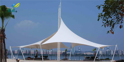 膜結(jié)構(gòu)是一種新型的大跨度空間結(jié)構(gòu),越來越受到用戶的喜愛和使用,膜結(jié)構(gòu)是由具有優(yōu)良性能的織物(膜材)通過支撐構(gòu)件(如剛性梁、柱、柔性索),或給膜內(nèi)空氣加壓以一定的方式組合并施加適當(dāng)?shù)某跏碱A(yù)張力而形成具有一定剛度的空間結(jié)構(gòu)形狀,從而承受一定外荷載的一種空間結(jié)構(gòu)形式。而膜材料是大跨度空間結(jié)構(gòu)最重要的組成部分,被稱為“第五代建材”。