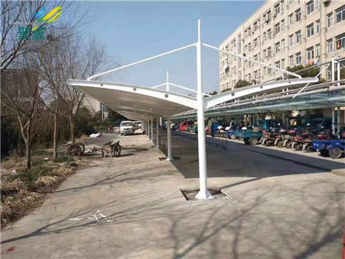 膜結構停車棚頂部,膜結構停車棚頂部大都數是PDV的膜結構材料,拆起來很方面,我們只要把它的邊緣跟支撐柱子連接處的固定螺絲擰掉就行。按順序一邊一邊的擰,不要這里拆點那里拆點。