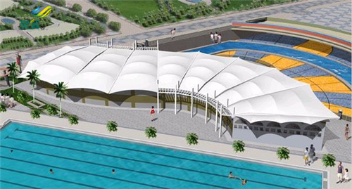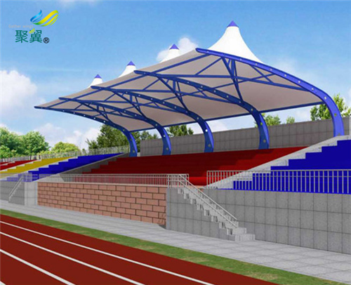 上海看臺膜結構的透光性好,透過自然光的亮堂空間。白天,陽光透過膜面使建筑物內充滿自然漫射光;夜晚,室內燈火透過膜面給空間增添了夢幻般的夜景。當膜結構用于體育館、娛樂設施時,可以實現全天候性的大空間,創造出室外的爽快和室內的舒適相結合的理想的空間。