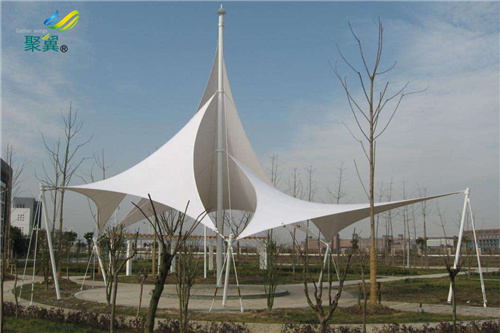 3、使用張拉膜的建筑從成本上面來說也是非常地實在的,因為張拉膜一次成型,而且施工簡單,所以總體的費用上面比起傳統的建筑要節約很多,目前在很多的停車棚或是公共場合當中都已經使用了張拉膜做為原料。