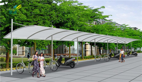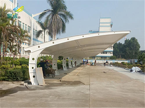 膜結構停車棚的藝術性。膜結構是一種新型的建筑結構形式,它不同于中國傳統建筑。由于其占地面積小、可便于安裝拆卸等特點,設計師可以充分發揮自己的想象力,設計出造型多樣、不拘一格的停車棚。
