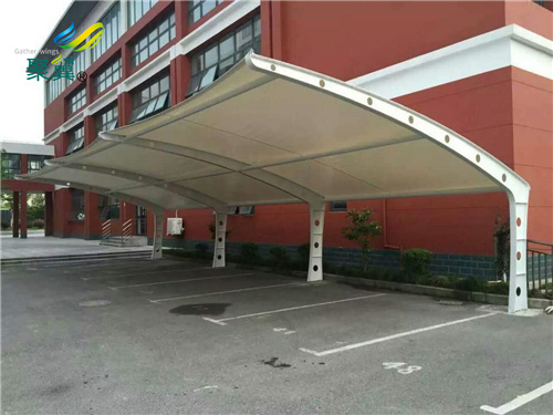 膜結構車棚的頂部要采用遮陽板封頂,同時要與車棚整體骨架采用壓條鉚接的方式,在鉚接部位要進行防酸堿腐蝕處理,這樣才能夠對車棚的車輛起到相應的保護作用,防止日光的直曬。