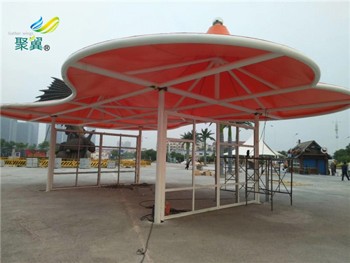 3、玻纖有機硅樹脂建筑膜材:有機硅樹脂具有優異的耐高低溫、拒水、抗氧化等特點,該膜材具有高的抗拉強度和彈性模量,另外該膜結構停車棚透光性好而且易制作。