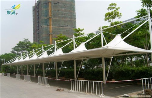 膜結(jié)構(gòu)車棚中的應(yīng)用也比較實用,質(zhì)量比較好,當(dāng)然造價也是相對性高。