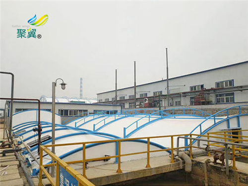 3、涂裝中間漆:用14~16目/平方厘米的無堿脫脂玻璃布配合環氧樹脂進行污水池加蓋。