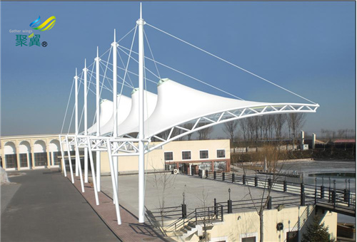 3.膜結構車棚的鋼件表面必須保護免受硬物和劃痕,不應暴露于各種酸性、堿度和有機溶劑