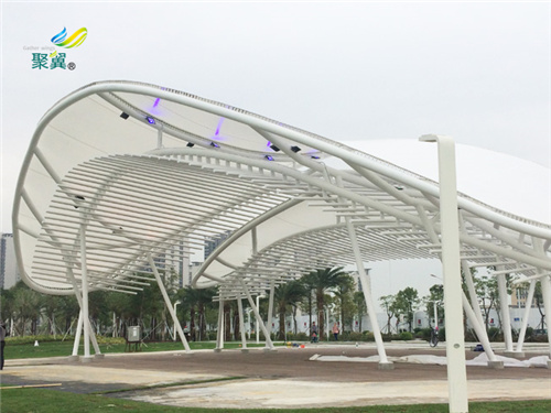 近年來城市的汽車,電動車,自行車擁有量成倍上升,但城市建設規(guī)劃沒能盡快適應這一發(fā)展的要求,常常是車無停放之地。所以停車場地的建設至關(guān)重要,由于膜結(jié)構(gòu)材料具有強度高、耐久性好、防火難燃、自潔性好,不受紫外線影響,使用壽命長,具有高透光率,所以