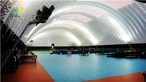 而且充氣膜結構所使用的膜其實是十分堅韌的,對于一般的雜物掉落在膜結構上不容易造成破損的情況出現。同時若是直接使用尖銳物質進行膜結構劃拉的時候,不容易出現開口的情況。這是因為在一定的力道下尖銳物品會對膜結構造成一定的損壞但是不足以導致膜結構直接破損。因此充氣膜結構的建筑在使用的時候不會容易出現破損的情況。