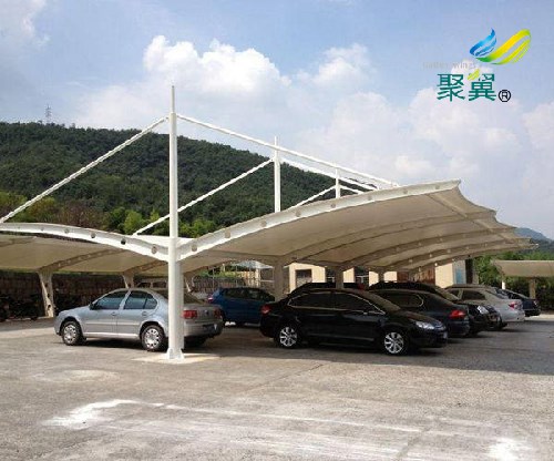 2、當膜結構車棚的支承結構為剛性邊界時,預應力的施加要通過特殊的構造來實施。對于柔性邊界,可通過調整撐桿的位置來調節預應力的大小。張拉索膜結構中,膜材的張拉預應力是靠索提供的。膜結構車棚布的安裝應連續,當無法連續一次完成安裝作業時應采取可靠臨時固定措施,以便抵抗施工期間可能發生的強風,同時還要注意張拉膜面不積水。膜布的張拉并不是隨意拉扯的,而是有順序的,如果操作不當的話,那么很容易給產品造成損傷,無法使用。