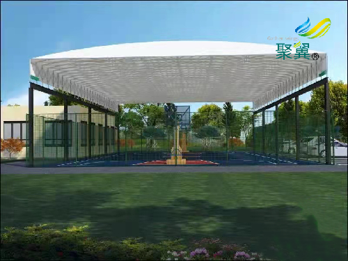 電動推拉棚常用于籃球場、網球場、足球場、門球場、廠房過道遮陽棚、具有隔熱功能,能有效避免日曬雨淋,電動的設計將戶內外融為一體,棚頂可從中間往兩邊打開,或者從一端打開,安裝的是防風輪可以卡在H鋼軌道上,可以有效的進行防風,滾動效果好,可隨時切換室內外模式,靈活自由的掌握內部空間。