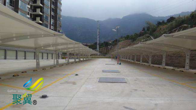 膜結構車棚具有良好的防震性能。由于其整體結構輕巧,即使在發生地震時,膜結構車棚建筑也不會造成過大的危害力,這也是防震性較好原因之一。