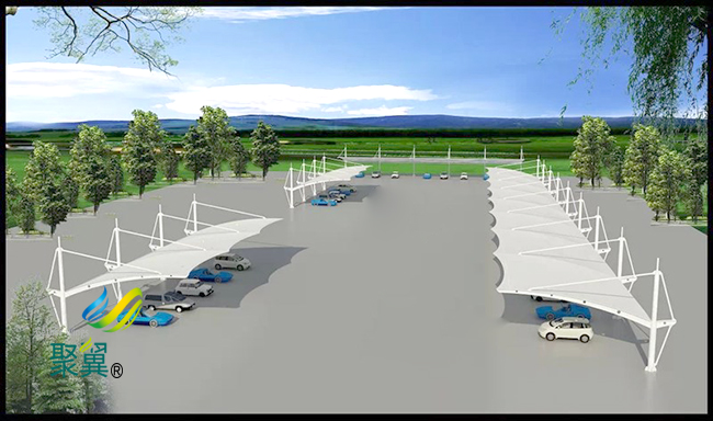 膜結構車棚,自重輕,具有良好的受力特點——成為大跨度空間結構的主要形式之一。 膜結構車棚的規劃和建設成為現代城市規劃的重要組成部分,在以后的建設里會變得越來越重要。 膜結構車棚輕巧、別致的造型在停車場及候車廳的建設中擔當了重要角色,除了滿足防風雨、防日曬等基本功能外,并有較好的標識招攬效果,展現了人們個性化的一面。