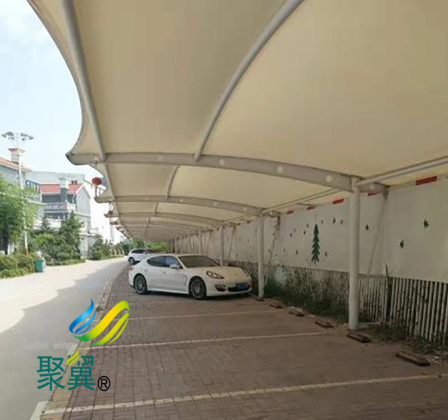 膜式膜結(jié)構(gòu)車棚特殊風(fēng)格,面料可根據(jù)客戶需要,印刷標(biāo)識或廣告語。膜結(jié)構(gòu)車棚具有全面的外遮陽功能,可完全阻擋紫外線輻射,降低棚內(nèi)溫度,降低空調(diào)負荷;膜結(jié)構(gòu)車棚遮陽棚具有節(jié)能效果,遮陽棚、雨棚。