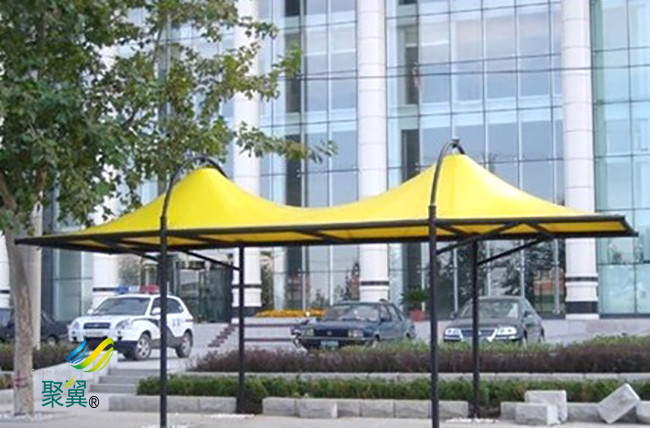 膜結構車棚除了一般雨蓬不可比擬的實用、耐用、遮風擋雨的功能外,膜結構雨蓬更是一座雕塑,一件藝術品,膜結構車棚給人美的視覺享受。其柔美,其曲線,其剛柔并濟,其豐富造型,膜結構車棚潔白無瑕,讓人 眼前一亮,回味悠長。