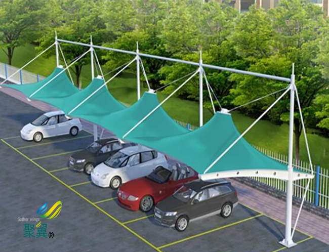 膜結(jié)構(gòu)車棚PVC不含柔軟劑,因此膜結(jié)構(gòu)車棚柔韌性好,易成型,不易脆,無毒無污染,保存時間長,因此膜結(jié)構(gòu)車棚具有很大的 開發(fā)應用價值。