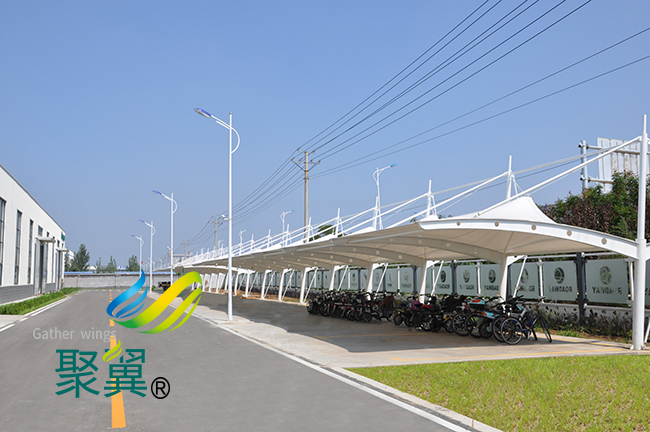 *適合使用這種材料來搭建膜結構車棚自行車棚,當然,也有惡劣的天氣,*為常見的都是臺風,所以就更加要求膜結構車棚自行車棚這種戶外的設施要有一定的抗風性,像這種膜結構車棚膜材也十分能適應這種環境,通過試驗發現,像這種膜結構車棚膜材的抗風能力*高達到十一級。