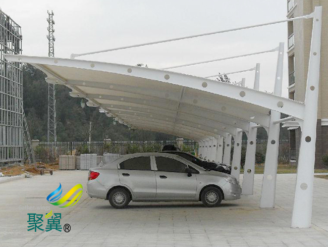 膜結構車棚工程能提供豐富多彩的用途,并與園林景觀溶為一體,創(chuàng)造出讓人們盡情享受的快樂空間,充分展示了結構構件清晰受力的藝術之美,景觀膜結構車棚用來做公園小品建筑,為這景觀環(huán)境裝飾更添藝術色彩。帶給人們不同的環(huán)境轉換感,新鮮感。膜結構車棚巧妙的融合周圍的環(huán)境,給人們一種典雅、浪漫溫馨之感。另外由于膜結構車棚膜材料本身特有的顯色性,在夜間彩燈的映射下能形成絢麗繽紛的景觀。