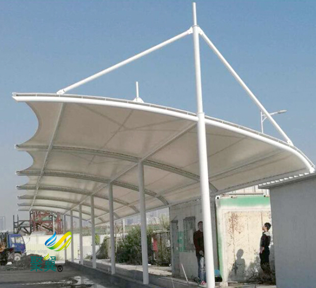 這樣的建筑能夠說在建筑業是比擬前沿的建筑技術,運用這樣的膜結構車棚建筑技術除了使建筑的效率進步了之外,在藝術外型上更是有了較大的打破。