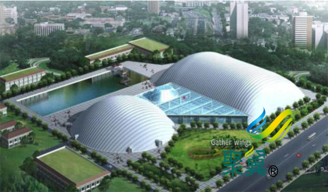 在二戰(zhàn)后.膜結構戲團帳篷的嘗試著擺脫舊馬戲團帳篷的面貌并成為現代的結構體系,以空氣膜結構的出現為標志:最初的嘗試開始于美國的軍用設施。