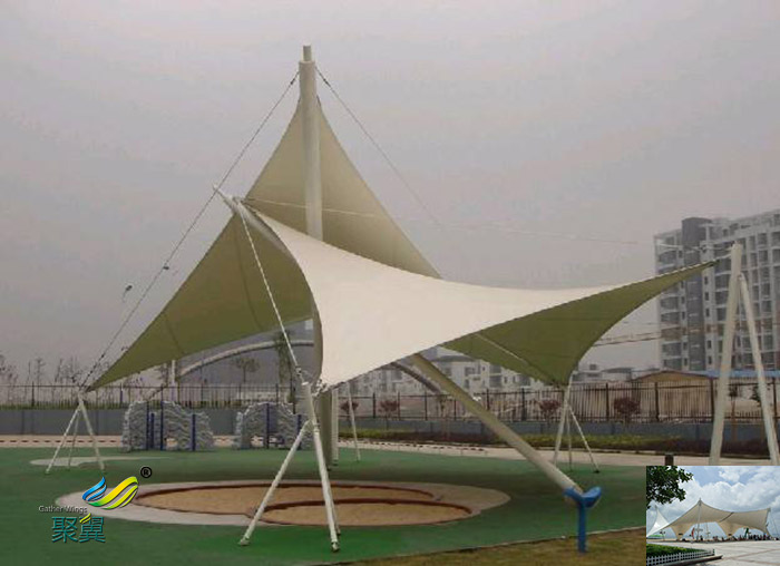 張拉膜景觀棚,指的是具有景觀效果的張拉膜遮陽棚。一般應用于旅游景點較多,也包括園林、小區、娛樂場所等地的膜結構遮陽設施,主要起到裝飾、遮陽、擋雨等作用。張拉膜景觀棚中所有加工和制作均在工廠內完成,可減少現場施工時間,避免出現施工交叉,相對傳統建筑工程工期較短。膜材料具有極高的非粘著性,在我們日常使用不沾鍋時就可以體會到這一特性。膜材料的表面不僅不易附著臟物及灰塵,而且其表面的灰塵會被雨水自然地沖洗干凈,所以常年使用仍然保持外觀的潔凈及室內的美觀。