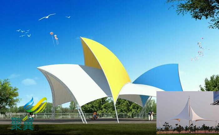 自潔性,膜材料表面加涂的防護涂層(聚氟乙烯、丙烯酸等)具有耐高溫的特點。而且奉身不發粘。這樣落到膜材表面的灰塵可以靠雨水的自然沖洗而達到自潔的效果。