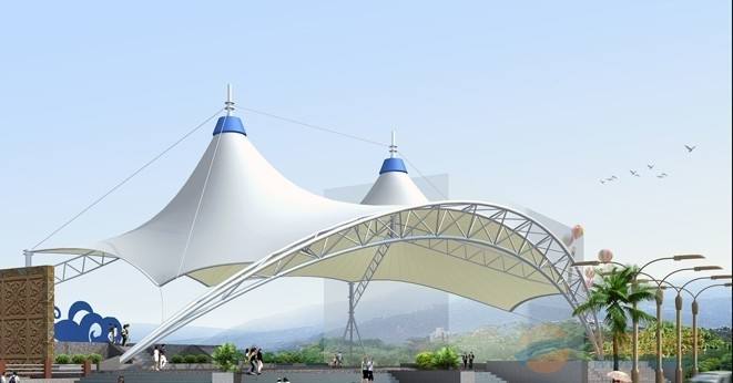 一、張拉膜結(jié)構(gòu)造型美觀具有景觀欣賞價值。張拉膜結(jié)構(gòu)作為一種21世紀(jì)最具現(xiàn)代感的建筑形式,它打破了其他傳統(tǒng)建筑形式多直線的建筑風(fēng)格,以期獨有的優(yōu)美曲面造型,簡潔、明快、柔美是建筑與藝術(shù)的完美結(jié)合。給人很強的視覺沖擊力,而且其柔性結(jié)構(gòu)給建筑設(shè)計師提供了更大的想象和創(chuàng)造空間。