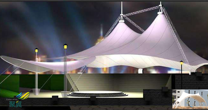 舞臺膜結構雨棚以其自身的特性在現代建筑領域得到廣泛的應用: