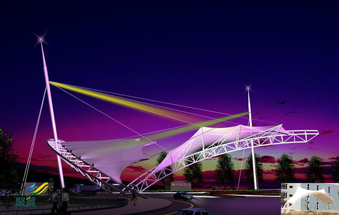1、舞臺張拉膜結(jié)構(gòu)的共同曲面外形使其具有激烈的雕塑感,膜面經(jīng)過張力到達自平衡。