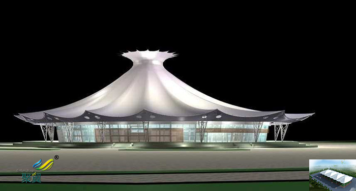 膜結構是一種全新的建筑結構形式,它集建筑學、結構力學、精細化工與材料科學、計算機技術等為一體,具有很高技術含量。其曲面可以隨著建筑師的設計需要任意變化,結合整體環境,建造出標志性的形象工程。主要具有以下特點: