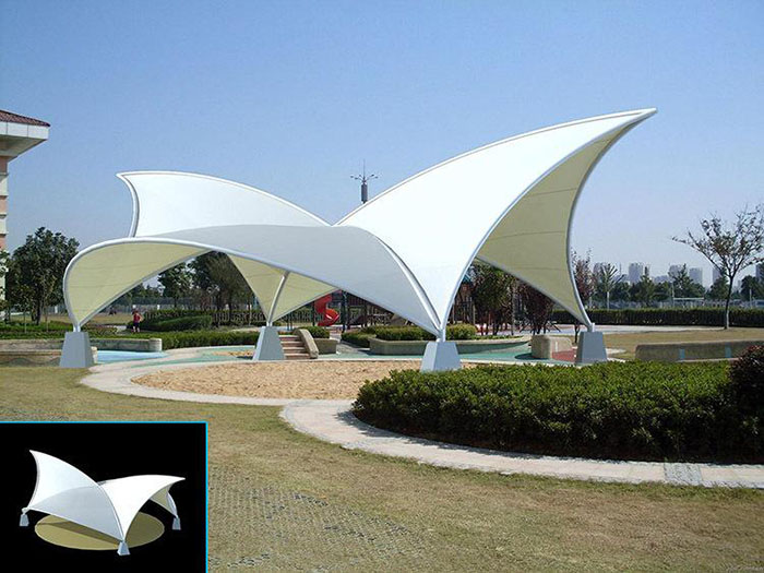 膜結構體育場館看臺為了解決鋼構配合鋁塑板的弊病,膜結構慢慢進入了看臺市場,相比傳統的建筑形式膜結構體育看臺的優點很多:首先它不僅滿足了造型的多樣性、夸張性,而且也完美的解決了對于大跨度結構用鋼量大的問題,往往對于大跨度的結構來說,起跨度尺寸就代表著需要大量的鋼結構來補足,然而對于膜結構來說,其特有的延展性和超高的的抗拉強度完美的解決了大跨度帶來的困擾,大大的節約了施工成本。膜結構體育場館看臺其各種顏色的配比也使得其與周邊環境多了更多的搭配方式,膜結構常用膜材特有的自潔效果防水效果,降低了后期對于主體結構的維護費用。膜材質保年限最低10年,高的能達到25-30年的材料質保,這也使得設計成永久性建筑的設計初衷得到了完美的結合。而且其相對于鋼筋混凝土和純鋼結構來說還有一明顯優點---施工周期短(自重輕、結構簡單)。膜結構體育場館看臺另外膜結構還有一優于其它結構的顯著特點—半透明性,白天能將陽光漫反射到結構以下,能完美的起到遮陽效果,還不影響其下方正常使用;在夜晚可以逆光照射,使得膜材表面發光,造就一個不一樣的視覺盛宴。