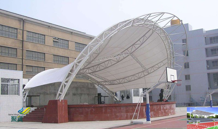 2、膜結構體育場館看臺防火性和耐久性-理想的建筑用膜材料,膜結構建筑具有耐熱性、耐氣候性、耐藥物性、高強度、防火等特性,而且不易老化,經過長期使用仍能保持其最初時的強度。如今廣泛使用的膜材料能很好地滿足對于防火的需求,具有卓越的阻燃和耐高溫性能,達到法國、德國、美國、日本等多國標準。