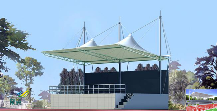 二、膜結構看臺的自潔性,這是因為經過特殊表面處理的膜材能通過雨水的洗刷達到自潔。