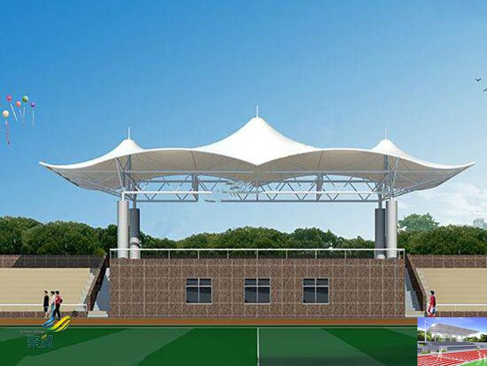 • 陜西膜結構露天體育場看臺雨棚球場膜設計施工