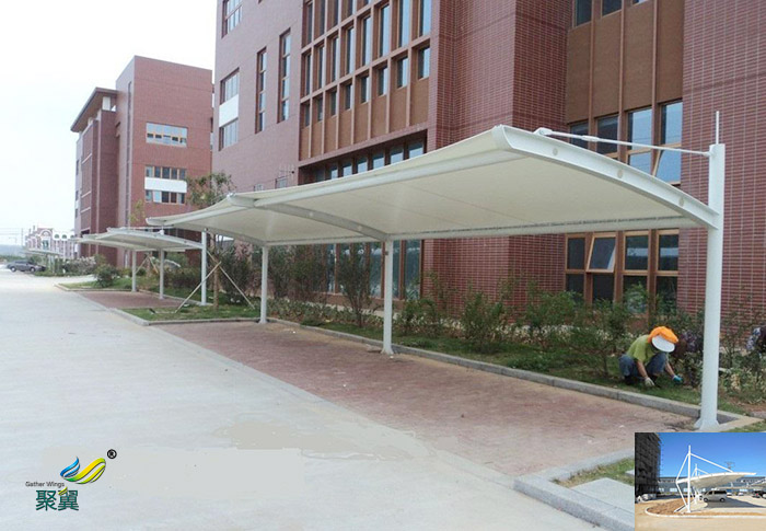 膜結構汽車停車棚新穎漂亮,一起表現構造之美,且色彩豐厚,可發明更自在的修建形體和更豐厚的修建言語。非常好的經濟效益膜修建屋面分量僅為慣例鋼屋面的1/30,這就降低了墻體和根底的造價。一起膜修建獨特的外型和夜景效果有顯著的“修建可識性”和商業效應,其報價效益比更高。更大跨度的修建空間由于自重輕,膜修建能夠不需要內部支持面大跨度覆蓋空間,這使人們能夠列靈敏、更有創意地規劃和運用修建空間。更低的動力損耗膜材有較高的反射性及較低的光吸收低,而且熱傳導性較低,這極大程度上阻撓太陽能進入室內。另外,膜材的半透明性保證了恰當的天然漫散射光照明室內。